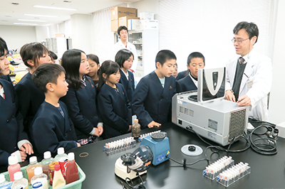 臨床検査学の実習室と研究室、学生たちが主体的に学ぶアクティブラーニングルーム、それに地域の小中学生が科学の面白さを体験する「長浜学びの実験室」が配置されています。