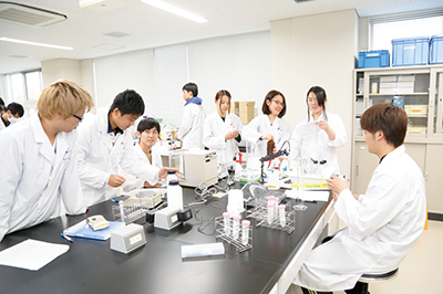 1年次生の基礎実験、2年次生の応用実験、3年次生の専門実験を行う実験室で、命岳館各フロアに2室と命北館3階に2室、合わせて10室の実験室があります。