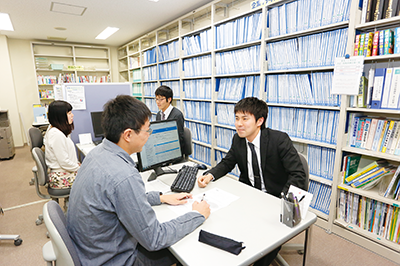 キャリアカウンセラーが常駐し、就職・キャリア担当のスタッフとともに模擬面接、エントリーシートや履歴書の書き方などの個別相談を受け付けています。