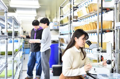 2021年度に新設された施設です。研究に使用するメダカやゼブラフィッシュ、ホヤなどを飼育しています。