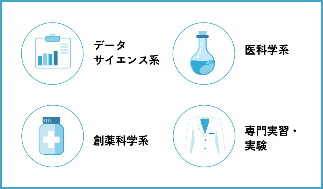バイオデータサイエンス学科で学べる統計解析や人工知能などのデータサイエンスの知識と技術は、これからの社会に必須となるものです。医薬や化粧品の開発、医療IT、ヘルスケア産業などのバイオサイエンス分野をはじめとするさまざまな産業に関わる企業、大学、国公立機関で活躍できます。