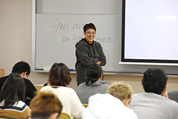 そのときは研究内容の半分も理解できなかったのですが、難解なテーマだからこそ自分なりに挑みたいという気持ちになりました。大学院への進学は学費がひとつの気がかりでしたが、大学院生が授業の補助を行うTA制度を利用して学費の足しにしています。学内で研究を続けながら、自分自身の学び直しの機会になる。とてもいい制度だと思います。