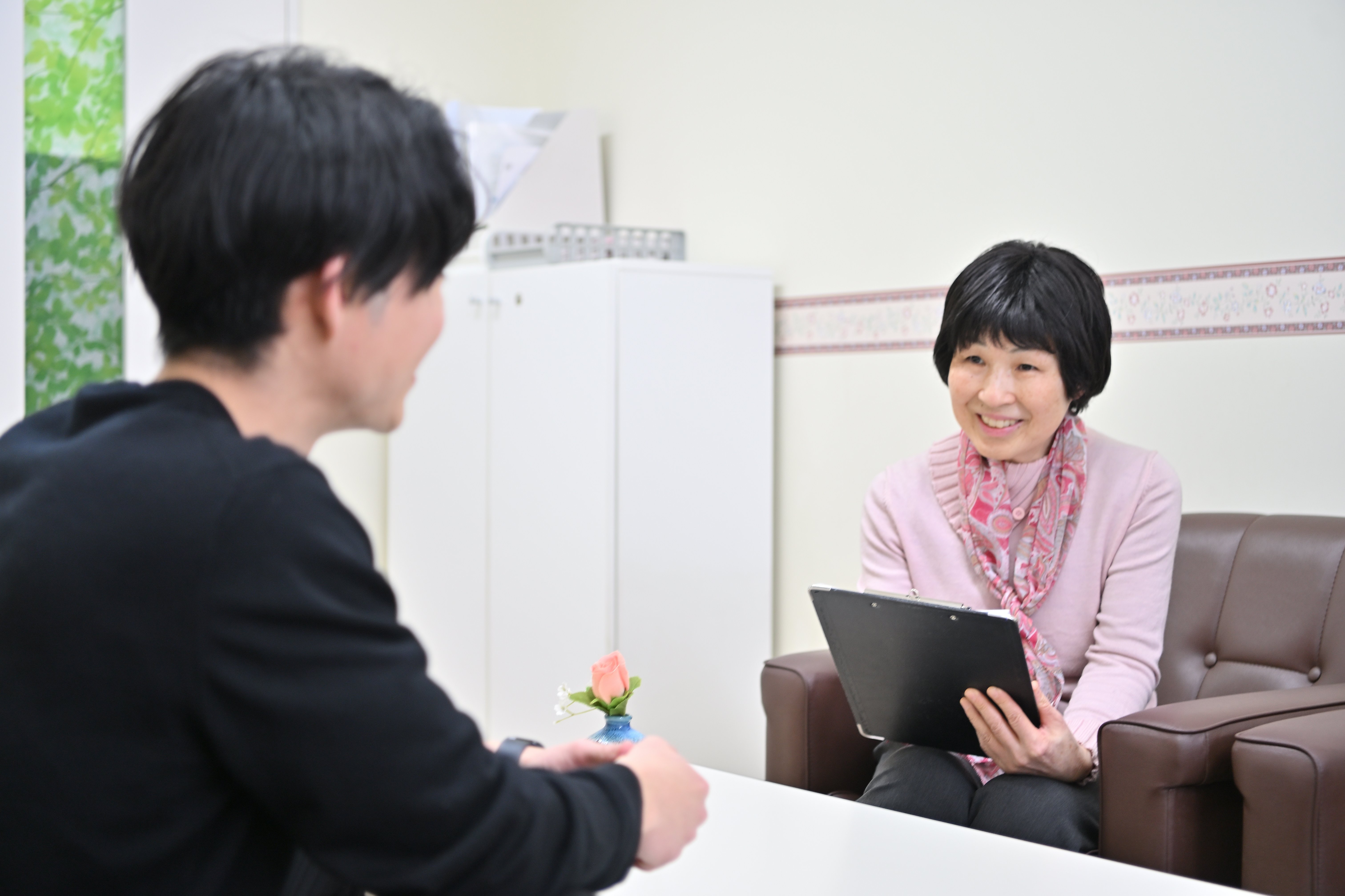公認心理師の資格を持つベテランのカウンセラーが、精神的な悩みだけでなく、対人関係、学習や就職まで、幅広い悩みの相談に応じています。相談申込は、学内用ホームページから予約できるだけでなく、面談中でなければ直接相談室を訪れて面談することも可能です。