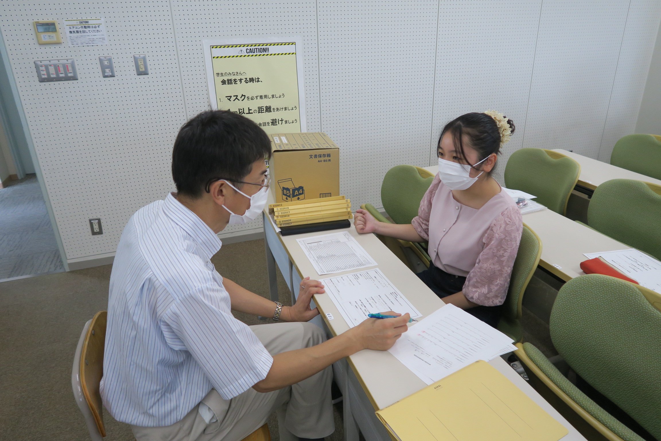 古田: 私は新入生と同じ目線に立つこと。まずは目を合わせて話すことが大事かなと思う。自分自身が1年次生だったときの気持ちを思い出しながら、新入生の相談に乗るようにしているよ。