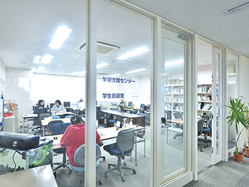 学習支援センターでは、開室時間中いつでも学習支援スタッフに相談することができます。 主に1・2年次生を対象に、授業の予習・復習やレポートの書き方、試験勉強の進め方など、大学での学びをサポートします。英語、数学、化学、生物、物理、実験などについて、専任の教員や先輩学生の学習アドバイザーが質問や相談に応じます。 勉強の進め方が分からないときや、やる気が出ないとき、もっと学びを深めたいときなども、スタッフが一緒に考えながらサポートします。 また、参考図書の閲覧や貸し出しも行っています。