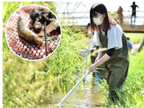 初めて実験に取り組む1年次生がバイオサイエンスの実験を安全かつ的確に行えるように、器具・機器の取り扱いや試薬調製法などの基本について学びます。実習に「ガサガサ」を取り入れ、水生生物の採取や種の同定作業を行います。