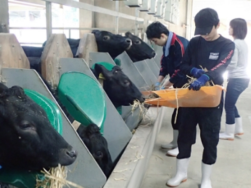 学外の公的機関の牧場で、夏期休暇中に実習を行います。産業上有用なウシ等の動物に接し、飼料作りや超音波による妊娠鑑定、体重測定、鼻紋採取、直腸検査等の動物の管理を体験することで、畜産の現状や産業動物に対する理解を深めます。