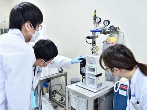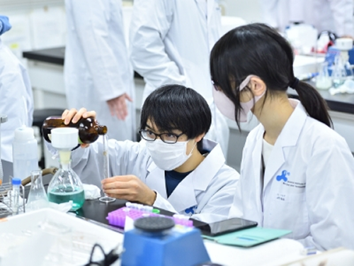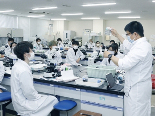 実際の研究現場で通用する技術力・応用力を身につけるため、本学のカリキュラムでは、実験・実習を徹底的に重視しています。実験手技のほか、コンピュータを使った情報技術の実習など、独自性の高い実験・実習に取り組み、1年次から段階的にレベルアップを図ります。