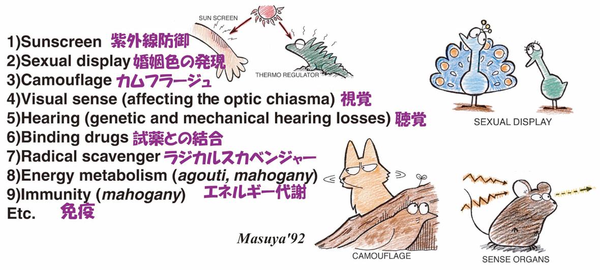 図1:色素細胞の機能(や関わる遺伝子の多面発現)