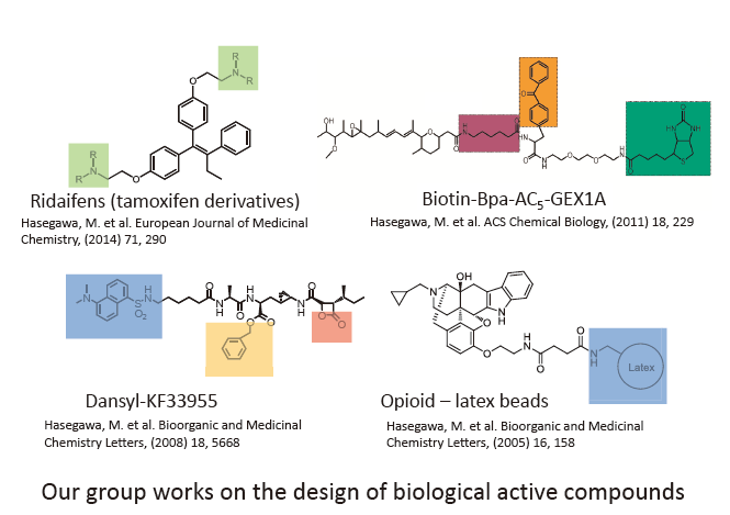 Tanaka M, Zhu Y, Shionyu M, Ota N, Shibata N, Watanabe C, Mizusawa A, Sasaki R, Mizukami T, Shiina I, Hasegawa M (2018) Ridaifen-F conjugated with cell-penetrating peptides inhibits intracellular proteasome activities and induces drug-resistant cell death. European Journal of Medicinal Chemistry, 146, 636-650. |