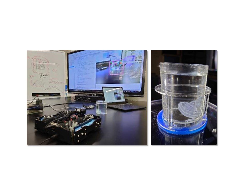 真正粘菌変形体など、一見原始的な生物であっても環境との相互作用から知的な振る舞いを発現します。このような現象は、生物学的に興味深い一方で、そのしくみは工学的に一般化、抽象化することで、産業分野、教育分野への応用も期待できます。このような背景から、クラゲの群挙動、同期現象の解析、ロボット応用を行っています。