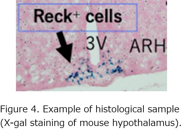 Reck (Reversion-inducing Cysteine rich protein with Kazal motifs) is a protein that inhibits the activity of MMP (matrix metalloproteinase), and its expression is reduced in many cancer cells. Although a limited distribution of Reck-expressing cells has been found in the mouse hypothalamus (DOI: 10.1016/j.mce.2020.110790), the cell type is unclear, so we are working to identify the cell type using immunohistochemistry and other techniques. In addition, since Reck plays an important role in angiogenesis (DOI: 10.1038/srep17860), we are conducting collaborative research with overseas laboratories to elucidate the distribution and physiological significance of Reck-expressing cells in the cardiovascular system.