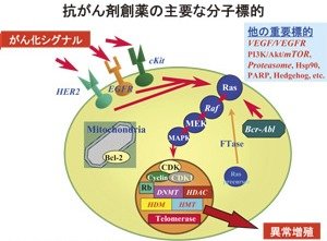Research and development of anticancer drugs targeting causative molecules of tumorigenesis have been actively promoted since discovery of human oncogenes in 1980s. The innovative molecular-targeted drugs such as Trastuzumab and Imatinib are typical fruits of the efforts for the past decade. Methodology developments and achievements of genomics research including completion of the human genome sequencing in 2003 are drastically changing the drug discovery system for cancer. Cancer medicine now enters an era of personalized medicine in which characteristics of a cancer and individual constitution of a patient are reflected in the therapeutic treatment. In accordance with the recent oncology R&D trend, Mizukami's laboratory is aiming to explore fundamental technologies for drug discovery system and to discover novel cancer-causing genes and develop a new generation of molecular-targeted anticancer agents. Below are listed a few of recent research topics in this laboratory.