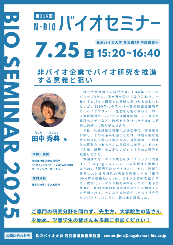 セミナー 申込不要【7/25】第216回バイオセミナー(特別臨時開催)のご案内
