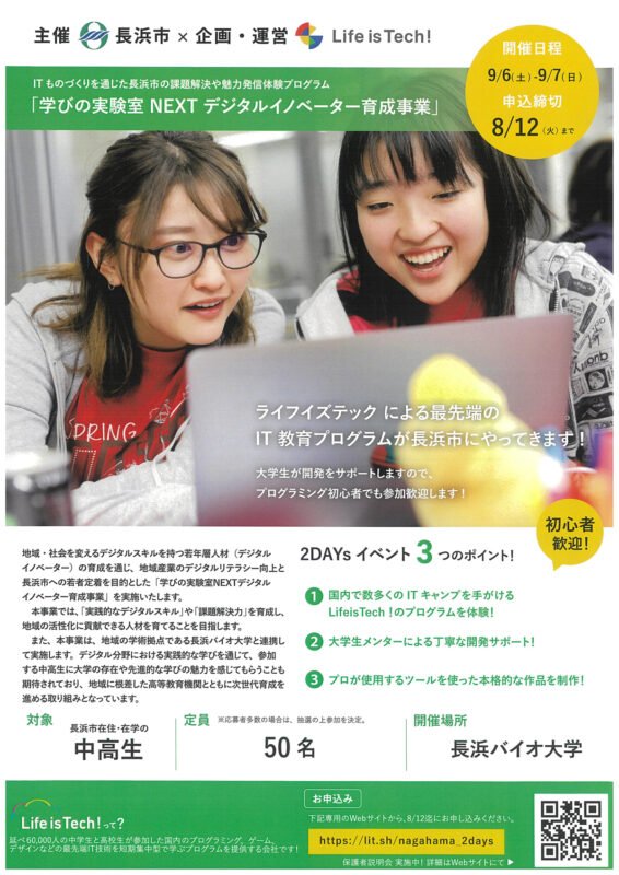 イベント 受付終了【中高生対象】デジタルイノベーター育成事業(学びの実験室NEXT産官学連携プロジェクト・長浜市)
