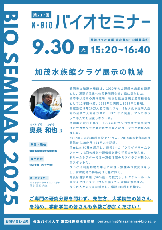 セミナー 申込不要【9/30】第217回 バイオセミナーのご案内