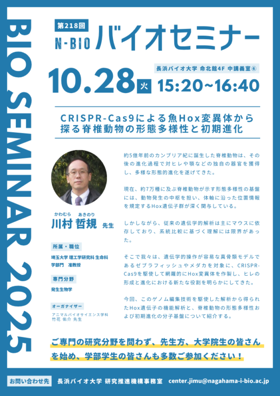 セミナー 申込不要【10/28】第218回 バイオセミナーのご案内