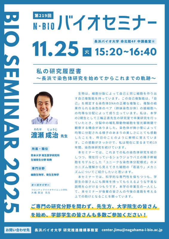セミナー 申込不要【11/25】第219回 バイオセミナーのご案内