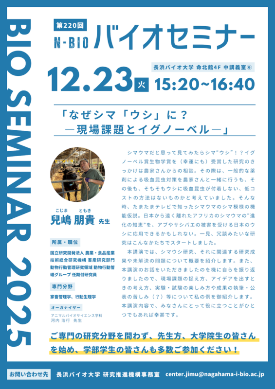 セミナー 申込不要【12/23】第220回 バイオセミナーのご案内