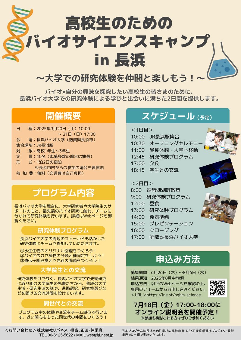 イベント 受付終了高校生25名が最先端の研究を体験!「バイオサイエンスキャンプ in 長浜」を開催しました
