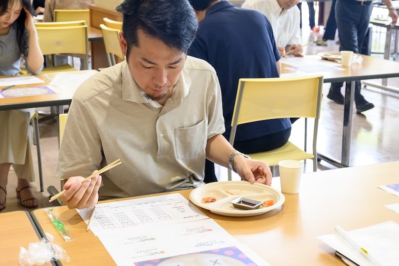 2025年9月17日と30日の2日間、アニマルバイオサイエンス学科・食品分子機能学研究室の河内浩行教授と学生たちが、養殖ビワマスの食味試験を実施しました。