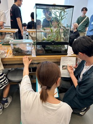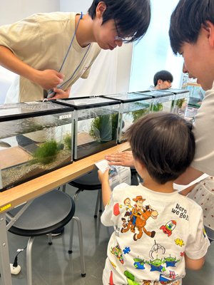 さらに、ゲノム編集に関する簡単な解説も行い、最先端の科学技術を身近に感じてもらえる機会を提供しました。参加者からは「初めて見る生き物ばかりで楽しかった」「子どもと一緒に学べる貴重な体験だった」など、多くの喜びの声が寄せられました。