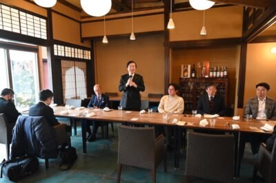 2月27日、実証設備の見学会が長浜地方卸売市場内で開催され、さらに地元企業・株式会社CLUB MAISONの協力のもと、びわこレストランROKUにて短期肥育したカキを使用した試食会が実施されました。ノベルジェンの小倉淳社長(長浜バイオ大学アニマルバイオサイエンス学科教授)は、「この実証設備の稼働にあたり、多くの支援をいただいた農林水産省、長浜バイオインキュベーションセンター、長浜バイオ大学、長浜市、設備施工関係者の皆様に深く感謝申し上げます」と謝辞を述べました。