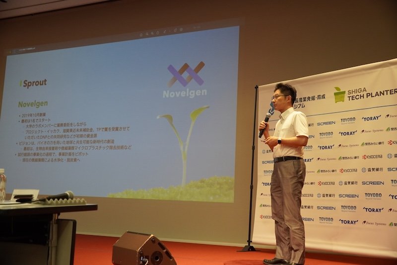 本大会は、滋賀県の理工系大学や中小企業が持つ技術シーズ、琵琶湖に関連する水・環境技術など、地域の強みを活かした創業支援プログラム「滋賀テックプランター」の一環として、株式会社リバネスが運営しています。今年は10周年記念企画として、「地域企業×スタートアップ企業の共創」に焦点をあてたパネルセッションや先輩起業家による基調講演、ファイナリストによるプレゼンテーションが行われました。
