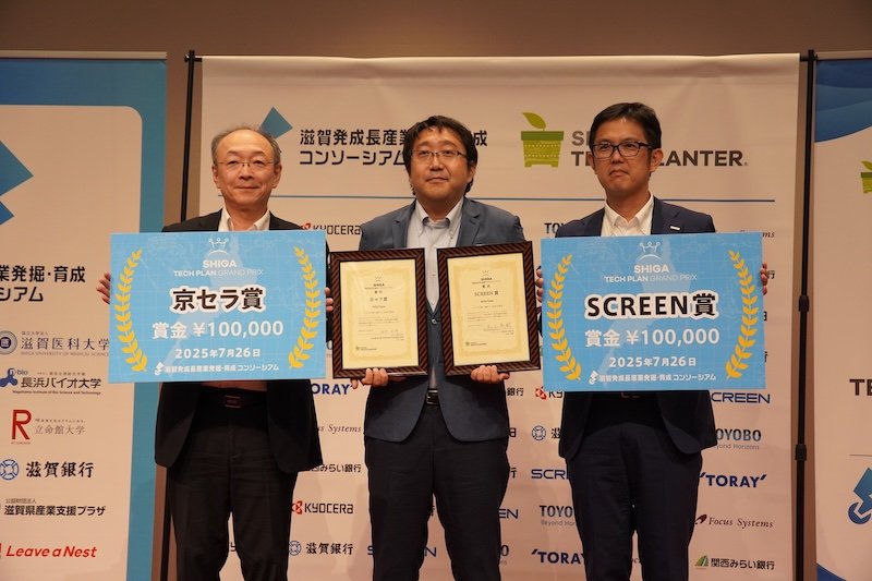 2025年7月26日(土)、しがぎんホール(滋賀銀行本店)にて開催された「第10回滋賀テックプラングランプリ」に、長浜バイオ大学から小倉淳教授(バイオサイエンス学部アニマルバイオサイエンス学科)、清水正宏教授(バイオデータサイエンス学科)、原口大生助教(フロンティアバイオサイエンス学科)がそれぞれ参加しました。