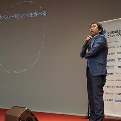 ファイナリストプレゼンテーションでは、清水正宏教授が「クラゲと築く海洋ごみ回収生態系」と題して、ミズクラゲの自然な行動を利用したマイクロプラスチック回収の新たな手法について次のように発表しました。「私たちは、環境浄化とビジネスの両立を図ります。クラゲに優しく低コストで持続可能なこの手法は、港湾施設などの排水処理、さらには水族館や教育現場への導入によって、新たな市場を創出できます。企業のCSR活動や自治体の環境政策とも親和性が高く、自然共生型のソリューションとして国内外への展開を目指します。」