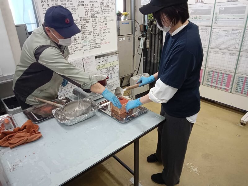 扶桑工業株式会社様の工場見学に参加しました。実際に動いている大型機械や生産ラインを間近で見ることで、講義で学んだ知識をより深く理解できました。特に、鋳造体験をできたのが印象的で、溶けたアルミを型に流し込む瞬間の熱気や、精密に成形される様子を自分の手で感じることができ、とても感動しました。また、安全管理の徹底ぶりと効率的なライン運営の工夫にも驚きました。社員の方々が温かく丁寧に説明・指導してくださったことも印象的で、ものづくりの現場に対するイメージが大きく変わりました。