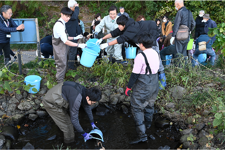 水路から幼生を救出
