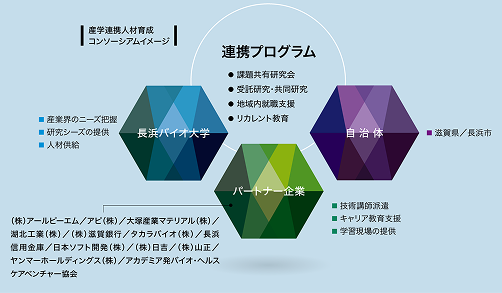 今、環境問題や国際情勢の変化により、社会の課題が増えています。長浜バイオ大学は、バイオ技術を活かしてこれらの問題を解決するため、新しい学びの場を提供します。例えば、ゴミを減らす「サーキュラー・エコノミー」や、化石燃料に代わる「バイオ燃料」などが注目されています。 しかし、これらの課題に対応できる人材を育てるには、大学の学びだけでは不十分です。そこで、企業と協力し、実社会で活かせるスキルを身につける「産学連携人材育成コンソーシアム」を設立しました。大学と企業が連携し、人材育成プログラムを開発し、学生や企業の社員が共に学べる場を作ります。この取り組みを通じて、社会で活躍できるバイオ分野の人材を育て、より良い未来を築いていきます。