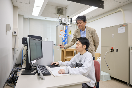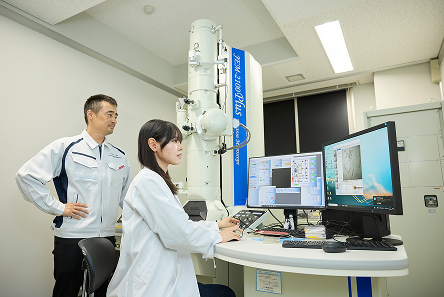 本学には、透過電子顕微鏡などの電子顕微鏡、高速並列計算機などのコンピュータシステムなど、最先端のバイオ研究には欠かせない最新の実験機器が揃っています。1年次生からこうした機器を活用して、充実した環境で学習し、研究に打ち込むことができます。