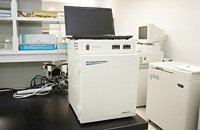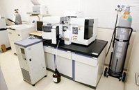 揮発性物質や低分子物質など気化しやすい化合物の含有成分を分離し、質量分析法によって各成分の定性・定量を行うための装置です。植物に含まれる香料成分や食品添加物の分析、環境ホルモンの検出などに利用します。