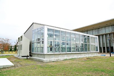 植物栽培用の屋外閉鎖型P1P温室・恒温恒湿室、それに形質転換実験に用いる親植物などを栽培する網室を備えた施設(教育装置)です。